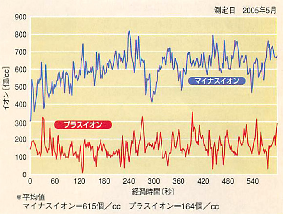 イオンバランスが理想的な状態だと、空気中の有害な物質を酸化して抑制し、雑菌の繁殖を抑え、免疫力を高める空気となります。
