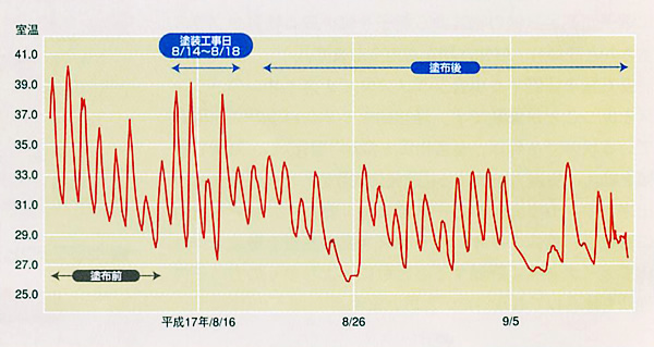 上記のグラフのとおり、塗装後は、外気温とほぼ同じ温度となりました。