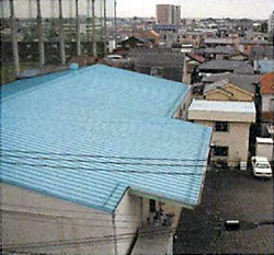 倉庫の屋根に塗布した例
