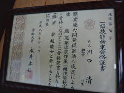 株式会社塗装職人では、代表自らが、塗装技能士1級の資格を保有しています。長年の経験と確かな技術で、真心を込めた、念入りな塗装工事をさせていただきます。